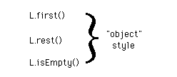 class List { : : void push(Object ob) { firstCell = new Cell(ob, firstCell); } Object pop() { Object result = firstCell.First; firstCell = firstCell.Rest; return result; }
