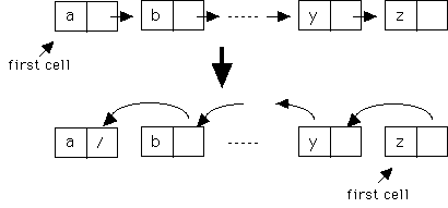 void reverseInPlace() { if(firstCell == null) return; Cell previous = null; while( firstCell.Rest != null) { Cell temp = firstCell; firstCell = temp.Rest; temp.Rest = previous; previous = temp; }