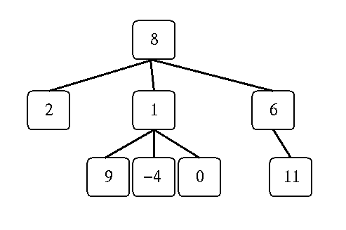 [8, 2, [1, 9, -4, 0], [6, 11]]represents the tree in the following diagram: