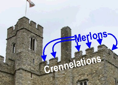 walls have crennelations, that nifty pattern of embrasures (gaps)