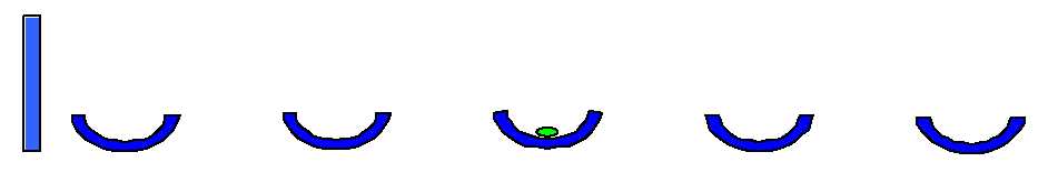 In this configuration we have five cups, and one pea in the center cup. We will denote this configuration as (0,0,1,0,0).