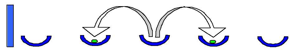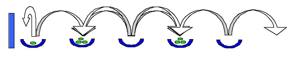 against the wall and land in the leftmost cup again. The peas in the rightmost