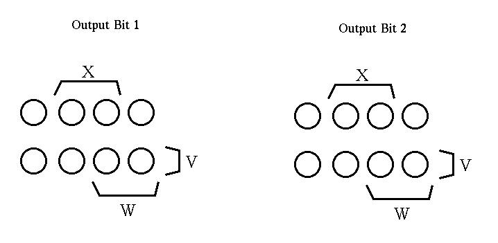You would like to design a circuit that computes the logical function described in the following truth table:Input v Input w Input x Output 1 Output 2 0 0 0 1 1 0 0 1 1 0 0 1 0 0 1 0 1 1 1 0 1 0 0 1 1 1 0 1 0 1 1 1 0 0 1 1 1 1 0 1Note that this is a function with three bits of input and two bits of output. In order to implement it, you decide to build two circuits. The first circuit will take in the three inputs and then output the correct value of Output 1. The second circuit will take in the same three inputs and output the correct value of Output 2.