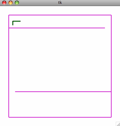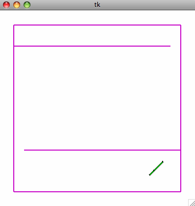 Your algorithm will be tested in this environment, as well as a couple of others. You may assume, however, that all environments will be contained within a bounding box from (-400,-400) to (400,400), just as this one is. robot's initial position will be specified, exactly as in the file above, and the goal positition will be to get to the upper 50x50 box, again as above. The obstacle lines may change, however!