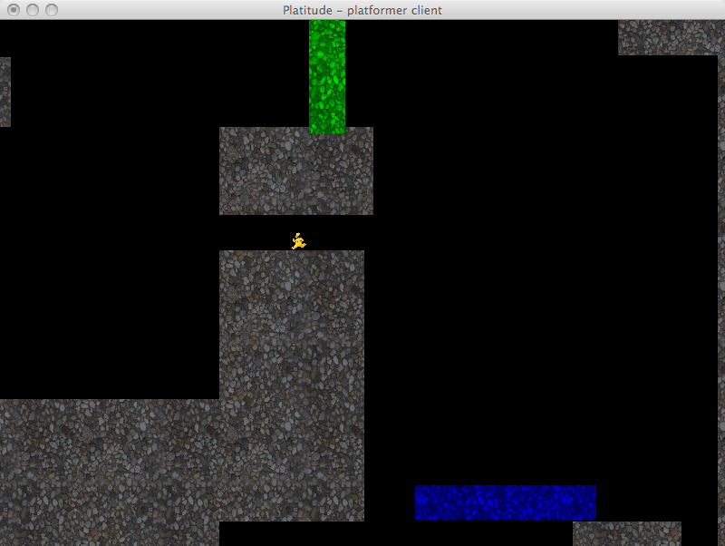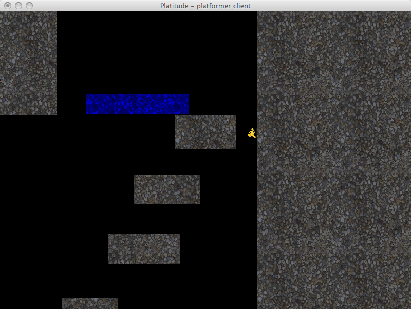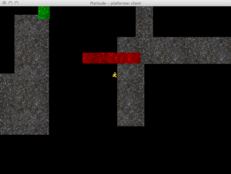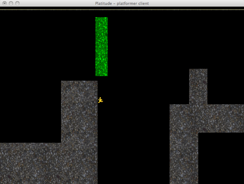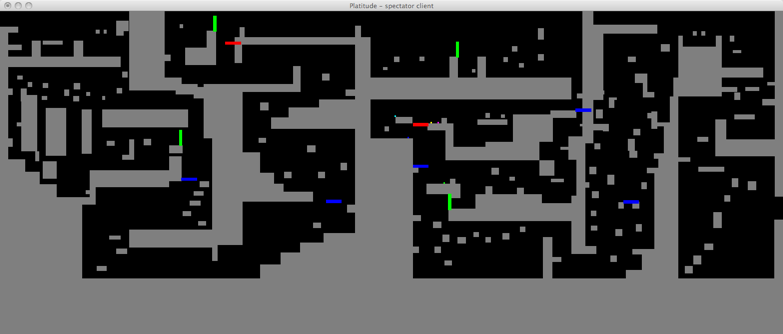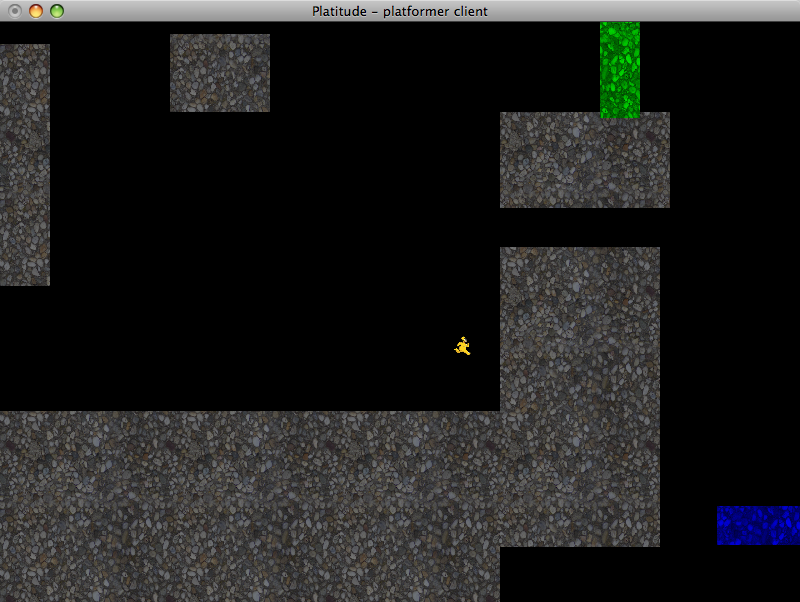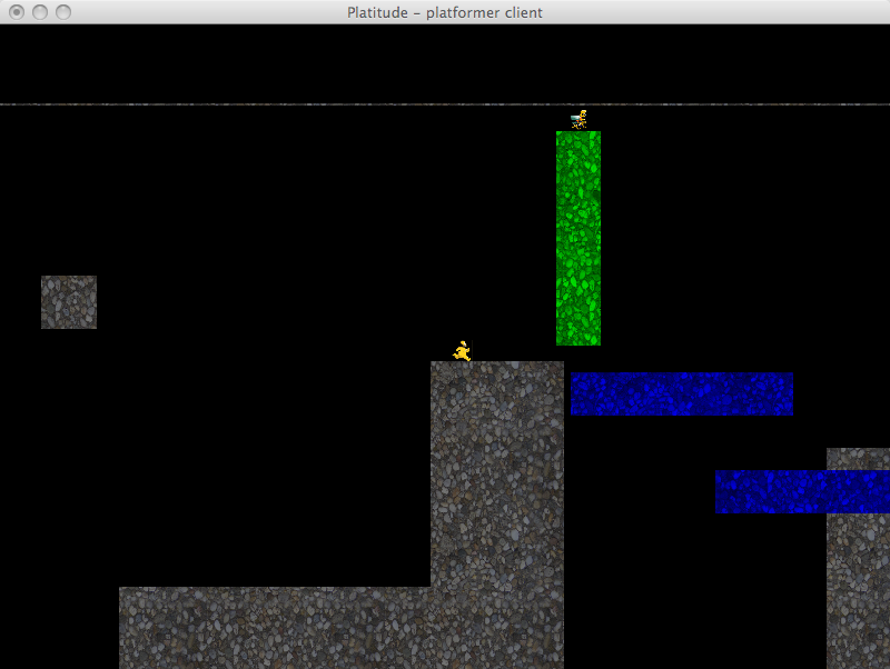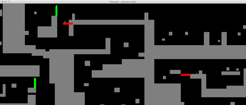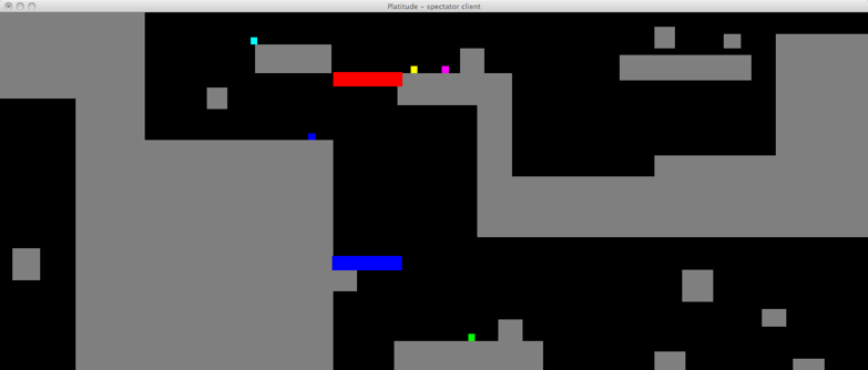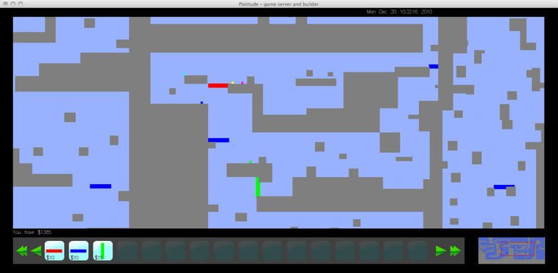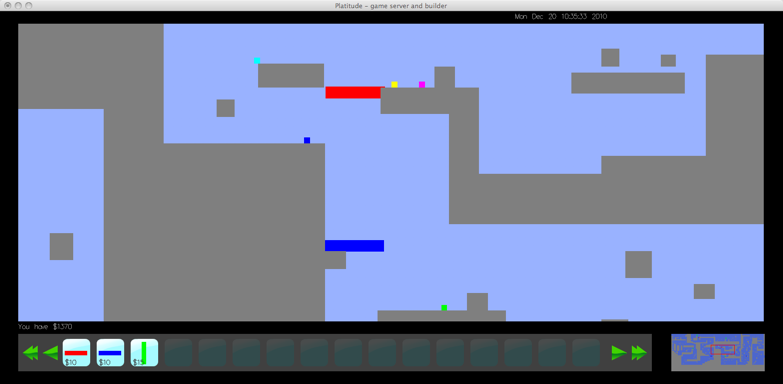 Platitude combines two of the most popular genres in video games - platforming and tower defense. Up to five players must navigate their world and reach the goal while avoiding fatal obstacles laid down by the builder. The builder can slow down the platformers by placing objects, towers and monsters in the path of the platformer. If the platformer does not reach the goal before time runs out or runs out of lives then the builder is successful and wins. Otherwise the platformers win and play continues on a different stage with a new builder.