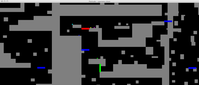 The platformers aim to traverse a level within a set amount of time. The platformer character has a limited number of abilities (jump, move left, move right, etc.) which it can use to explore the map.