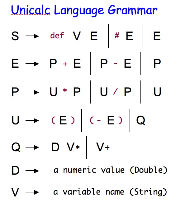 of the unicalc language. How to design and implement this is 100% up to you. In the