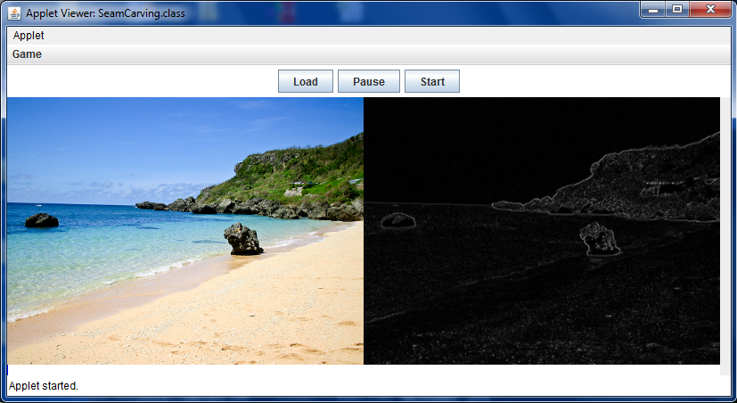 from the command-line with appletviewer SeamCarving.html