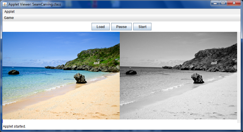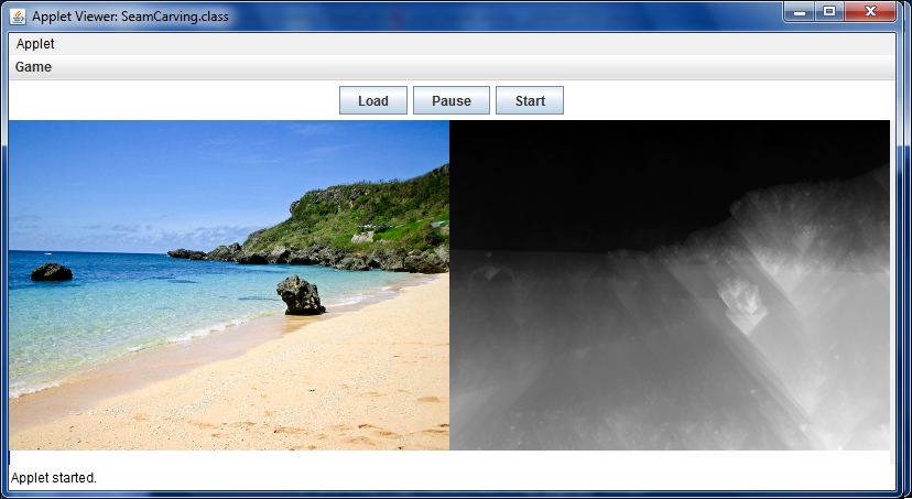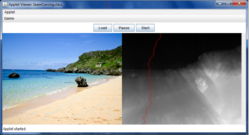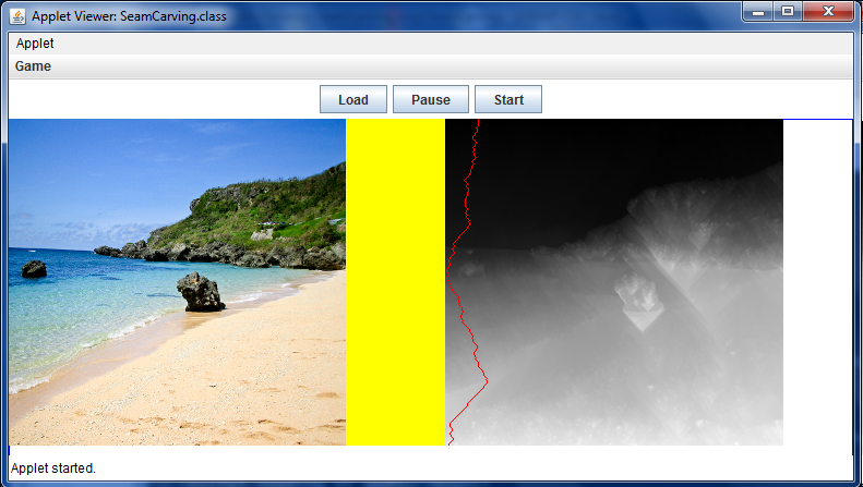 from the command-line with appletviewer SeamCarving.html