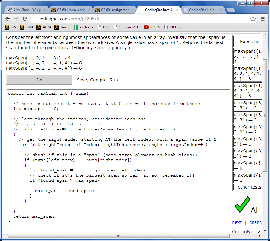 - If you're frustrated by the lack of syntax highlighting in codingbat.com exercises, you might want to download a Java