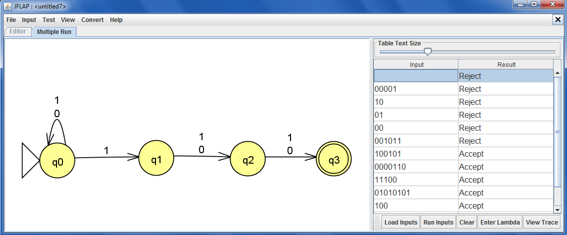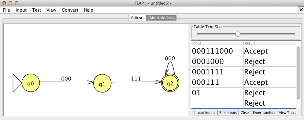 To test more strings at once, from the Input menu, choose Multiple Run.