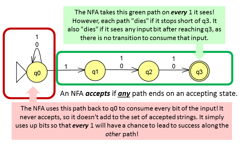 multiple states as accepting states and doesn't have an explicit