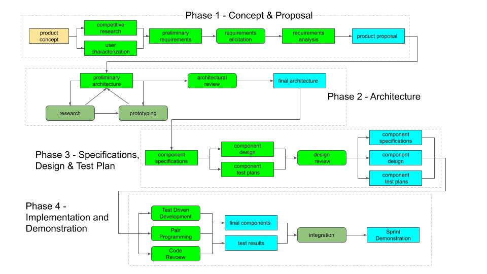 you designed in phase 3. 2. Two of you will spend (at least) one session doing pair-programming and write up a brief report on the experience. 3. (at least) one of you will develop your code in a Test Driven Development fashion (implementing and running tests as you complete each routine or feature) and write up a brief report on your experience. 4. (at least) one of you will implement your component and then submit it to code review by other members of your team and produce a report from that review. 5. Each of you will implement the component test plan you designed (in phase 3) and use it to validate the correctness of your implementation. 6. As a team, design a demo that shows your (independently implemented) components working together. 7. As a team, prepare and present a brief sprint review and demo. 8. As a team, review the processes you have followed, and write up a post-mortem report. |