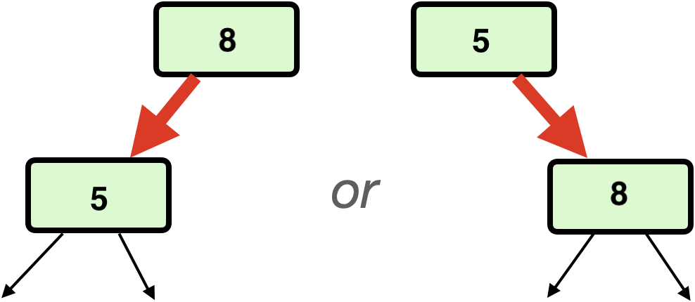 Anywhere we have a three-node in a 2–3–4 tree, we could draw one of two equivalent binary trees where the 3-node was broken up into two BST nodes.