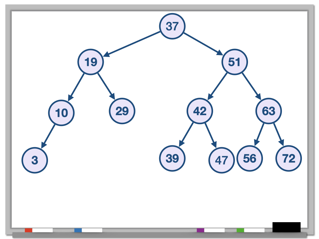 At a high level, to insert a key we just use our look-up procedure to find the spot for the new node, then place it there.