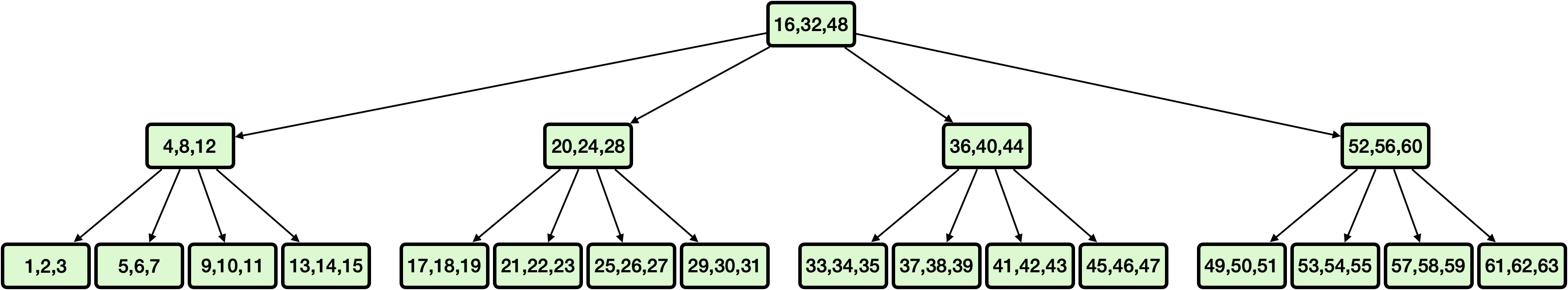 All together, that gives us \( 3 \times \log_{4}{( n + 1)} \) comparisons to make in a lookup.