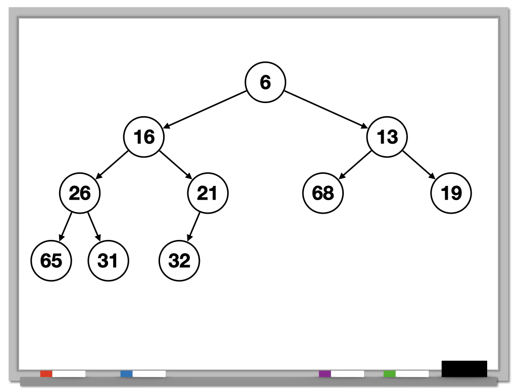 Although we visualize a heap as a binary tree, in practice we don't usually encode it using nodes and pointers.