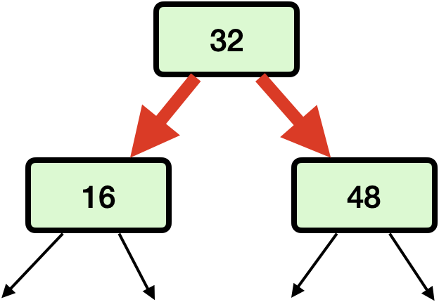 Notice that we've marked the edges between the three nodes that were part of our original 4-node by making them bright red and thicker. That's our way of remembering that those nodes were acting like a single unit. If we wanted to, we could convert the BST with these “super edges” back into the original 2–3–4 tree!