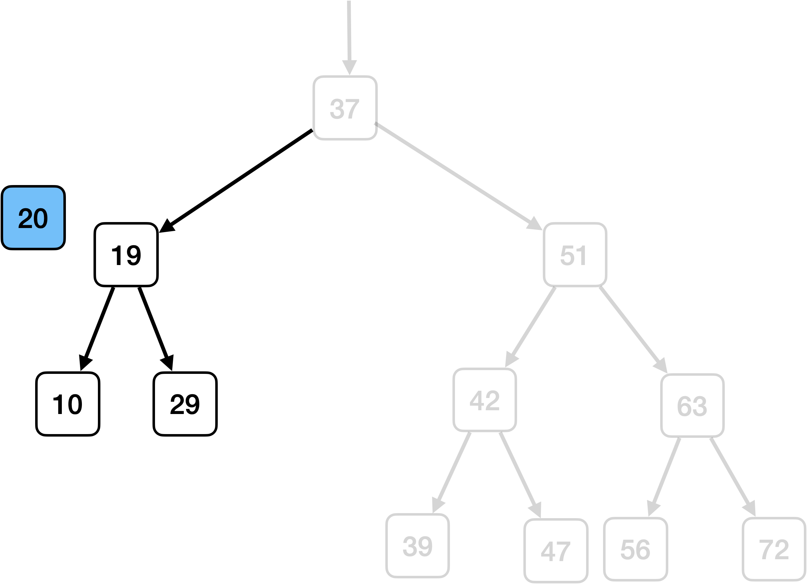 You got it! Since 20 > 19, we'll go into the right subtree this time: