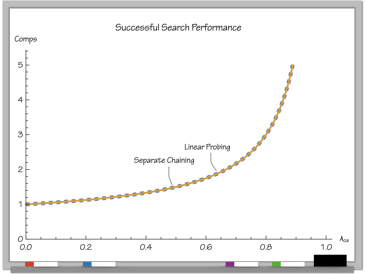 Yeah, the curve is a little bit lower. Remember, that doesn't really mean that separate chaining is faster in some general sense.