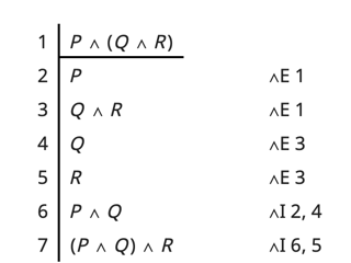 \(P\land (Q\land R)\ \ \vdash\ \ (P\land Q)\land R\)