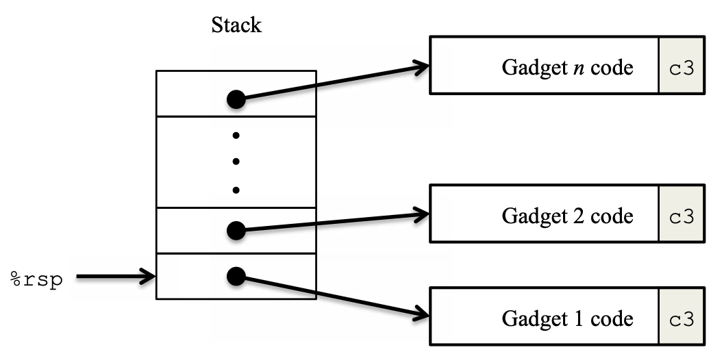 Fortunately (for doing this lab), clever people have devised strategies for getting useful things done in a program by executing existing code, rather than injecting new code. The most general form of this approach is referred to as return-oriented programming (ROP).