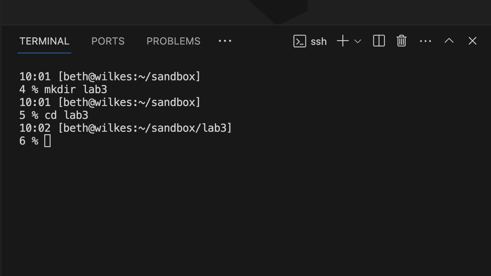 mkdir lab3), and enter that directory (e.g., usingcd lab3).