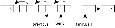 void reverseInPlace() { if(firstCell == null) return; Cell previous = null; while( firstCell.Rest != null) { Cell temp = firstCell; firstCell = temp.Rest; temp.Rest = previous; previous = temp; }