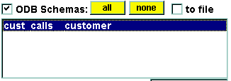 | Show or generate objects from schemas | Check the Schemas box, then select the schemas of interest, then press either the Show as Table button or the Generate Objects button. |