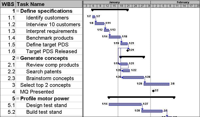 are input/output (e.g. requirements validation cannot begin until we have completed