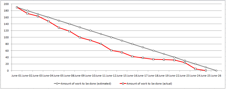 to-date against vs. date (days into sprint).